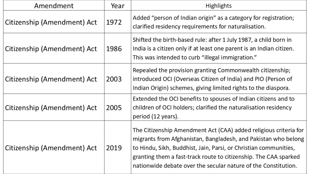 - R. Batra v. Union of India (2020) – upheld the government’s power to amend the Act but warned against arbitrary denial of citizenship.