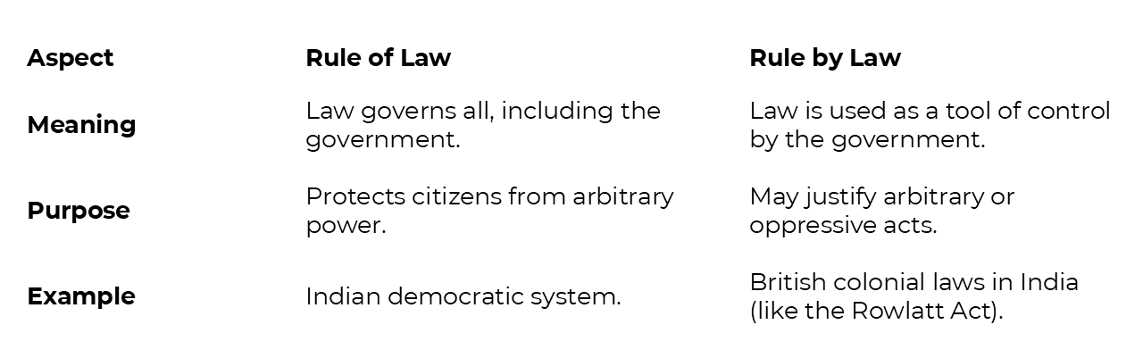 Thus, Rule of Law safeguards democracy, while Rule by Law can coexist with dictatorship.